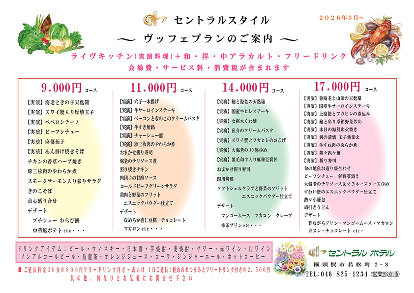 ※お料理型式は着席・立食等ご相談下さい。